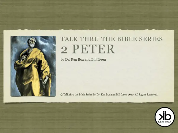 Need a teaching/learning tool on the book of 2 Peter to improve your biblical literacy or to teach to others? The Talk Thru the Bible series was designed to help pastors, teachers, and small group leaders learn or teach any book of the Bible in an easy way. Included is a package of high-quality visual presentation tools that you can use to teach just about any audience. Verbally or visually present an overview of the book using the included tools: a complete PowerPoint PC or Mac Keynote presentation, an MP3 audio file of Dr. Boa presenting the overview, the actual Word document script that Dr. Boa used to present the overview, plus a movie file of the animated PowerPoint/Keynote presentation given by Dr. Boa.