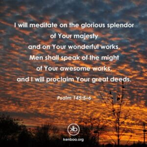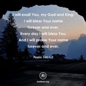 Blessed are You, O Lord, God of Israel our father, forever and ever. Yours, O Lord, is the greatness and the power and the glory and the victory and the majesty, for everything in heaven and earth is Yours. Yours, O Lord, is the kingdom, and You are exalted as head over all. Both riches and honor come from You, and You are the ruler of all things. In Your hand is power and might to exalt and to give strength to all. Therefore, my God, I give You thanks and praise Your glorious name. (1 Chronicles 29:10–13)